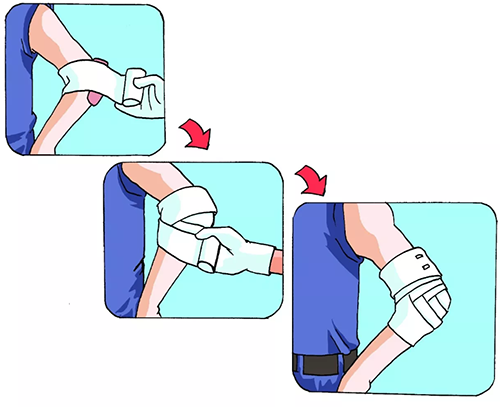 ·包扎結(jié)束時,在關(guān)節(jié)的上方重復(fù)纏繞一圈固定。